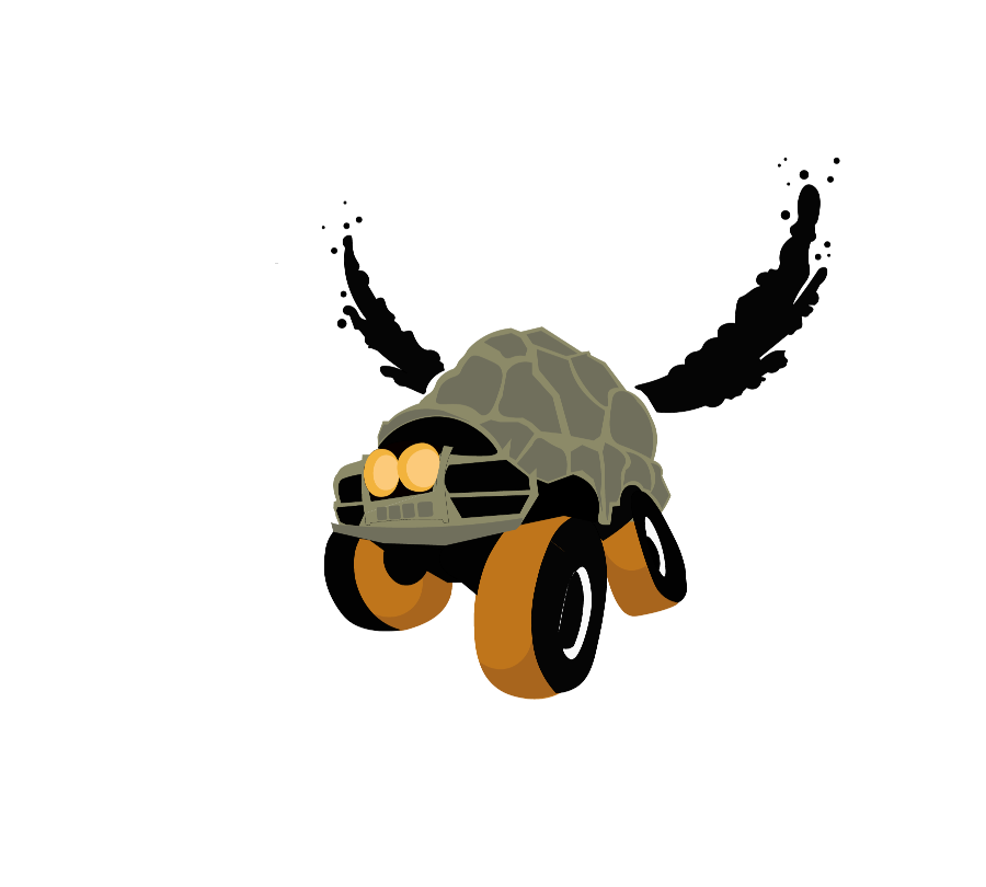The logo combines a flying turtle with elements of an off-road vehicle.
